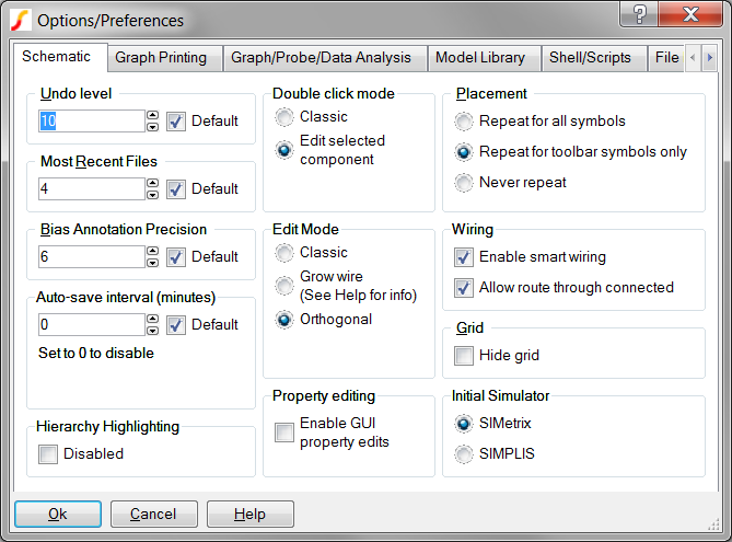 Type edit_options into the command line of the SIMetrix/SIMPLIS